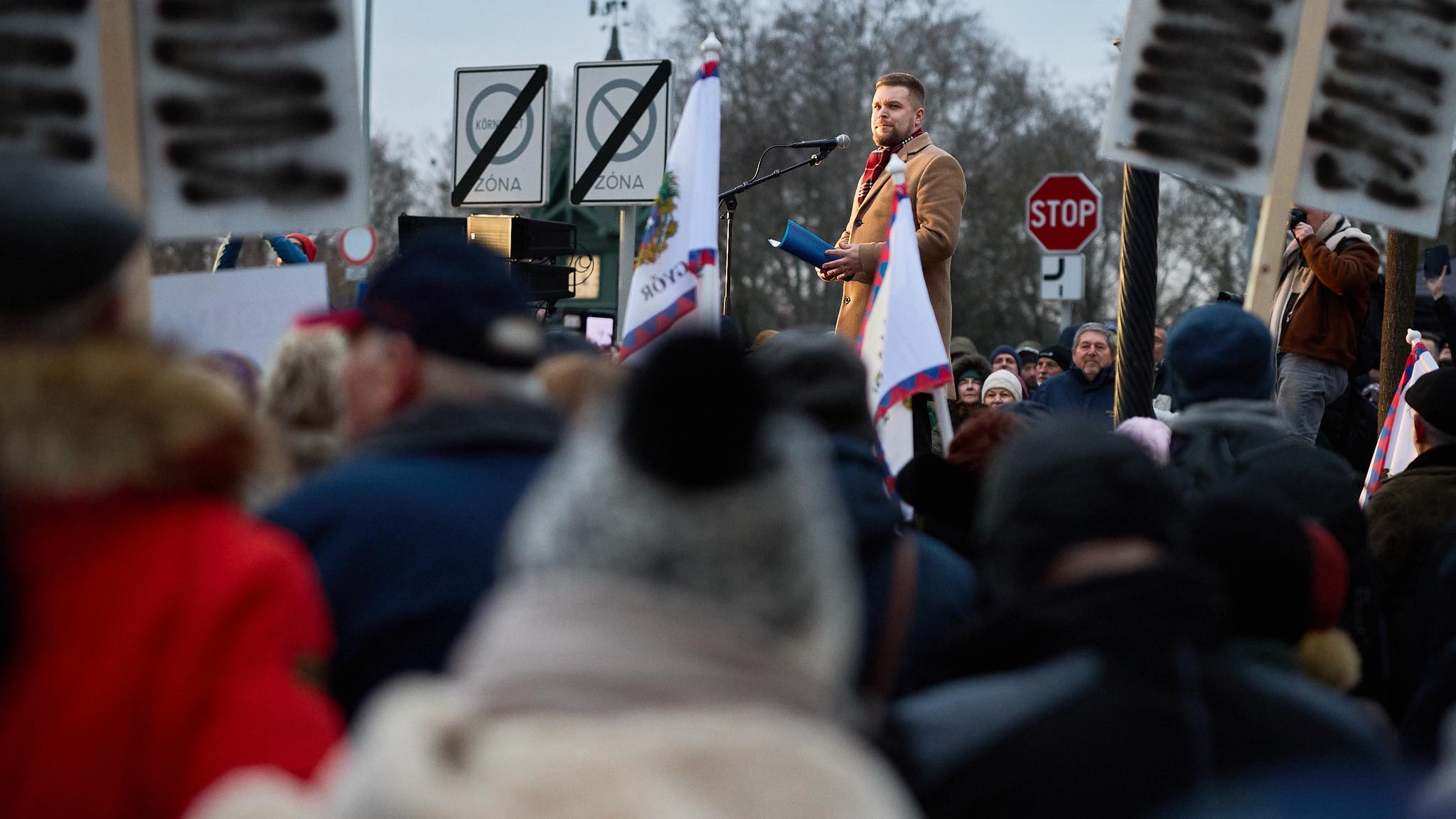 „Ez a város most az ország. Nem tűrjük tovább a sarcot, a lopást, és nem nekünk kell szégyenkeznünk emiatt” – Pintér Bence nagy tömeg előtt nagy beszédet mondott Győrben