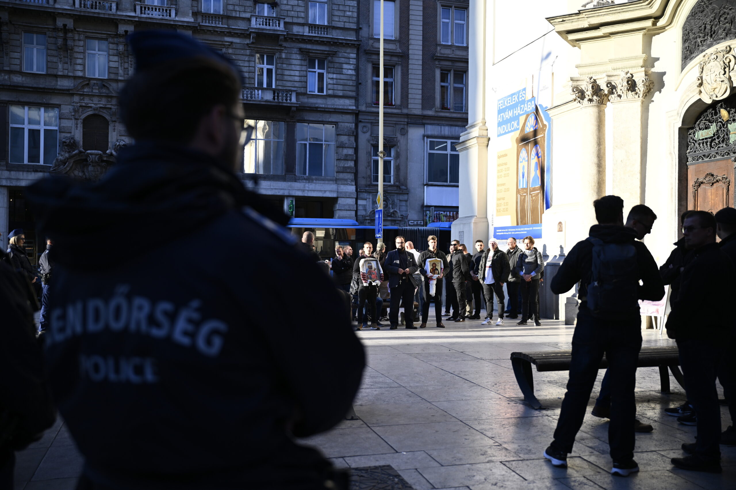 Szentképekkel felszerelkezett ellentüntetők várták Hadházyékat a Ferenciek terén