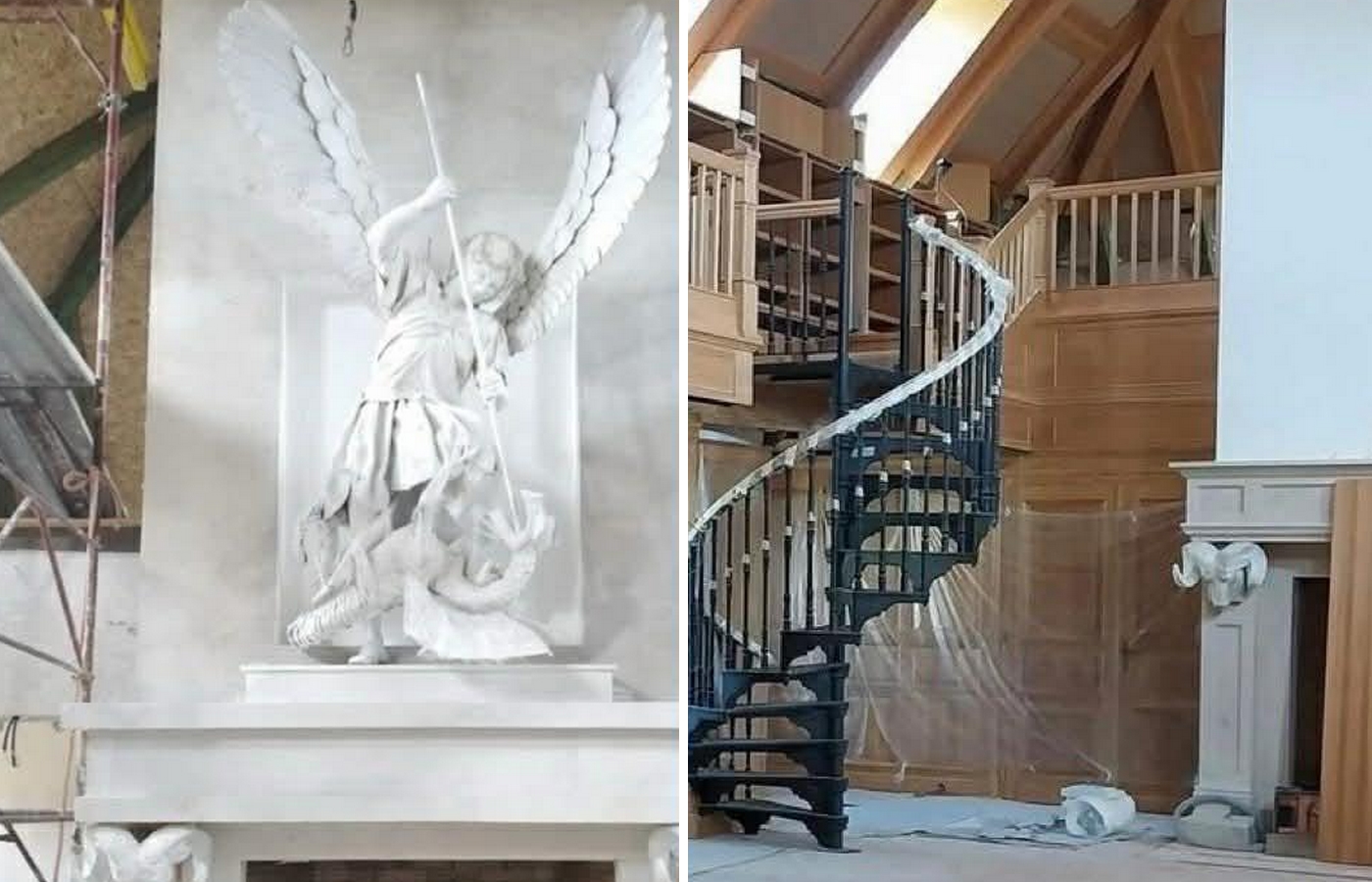 A független képviselő ezúttal a könyvtárról posztolt fotókat, amelyek szerint a kandallóra egy Szent Mihály-szobor került. Ugyanakkor állítása szerint az építkezés későbbi szakaszában készült képen már nem látható az alkotás.