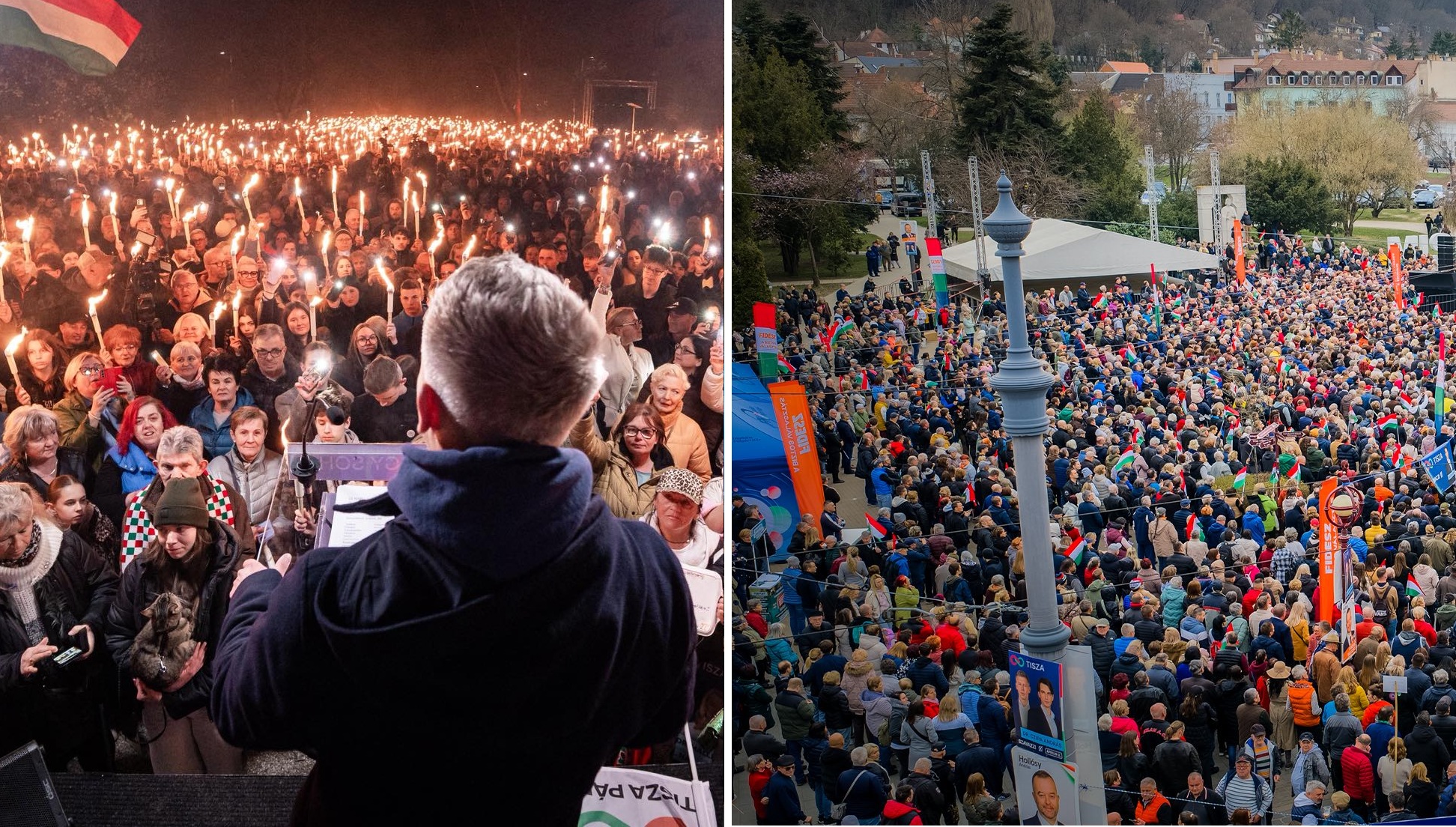 A TISZA Párt elnöke szerint a „leköszönő miniszterelnök” azzal vagánykodik, hogy Miskolcon a „Fidesz Travel (Fibusz)” feleannyi embert hozott össze, mint ő Sopronban. Orbán eközben a béke és biztonság fontosságát hangsúlyozta.