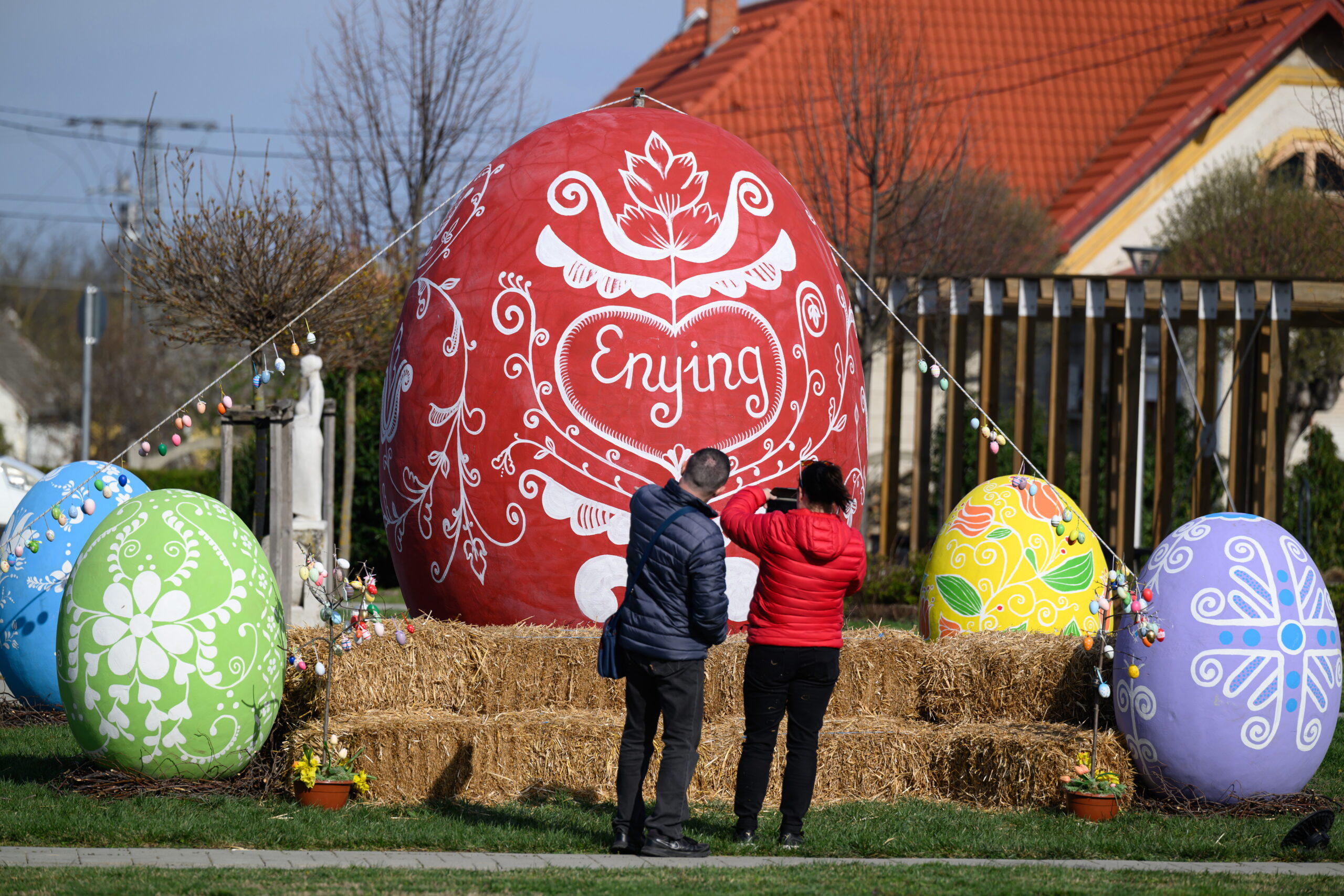 Enying lakossága egy közösségi összefogás keretében egy hatalmas húsvéti installációt hozott létre a város főterén. A 304 centiméter magas tojással a helyiek célja a település negatív megítélésének megváltoztatása volt.