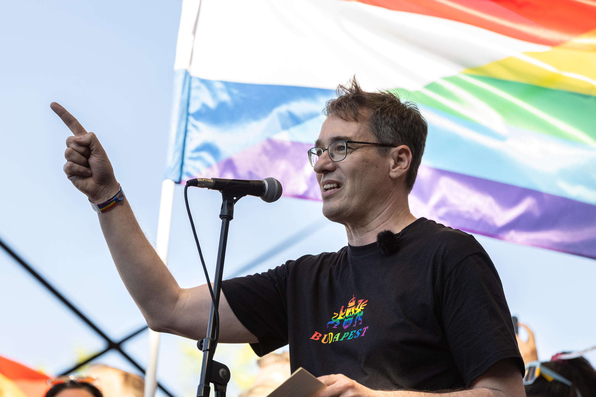 A rapper arra kérte az embereket, hogy menjenek el szavazni. A beszédében a budapesti Fidesz-frakció sokat kritizált, AI-jal készített kampányvideójára is utalt.
