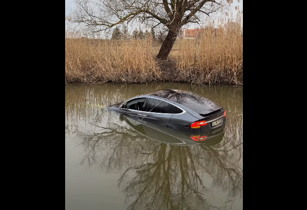 Videó: Elnyelte a Hortobágy-Berettyó a Teslát: a sofőrjét mentő vitte a kórházba