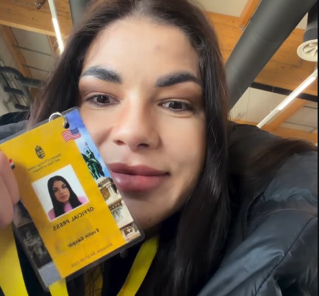 Így várta Gáspár Evelin az amerikai alelnököt Szijjártó Péter oldalán a repülőtéren